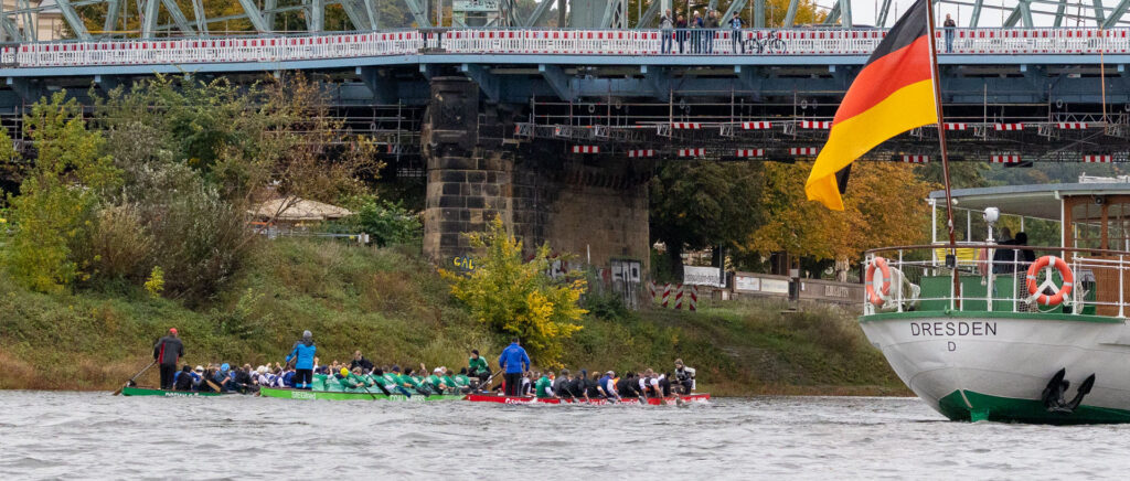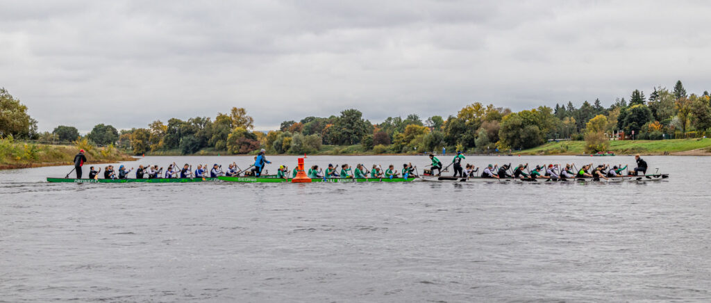 Am Ende war es ein fantastischer 6. Platz. Für‘s erste Mal nicht schlecht. An dieser Stelle bedanken wir uns nochmal recht herzlich bei den Sportfreundinnen Ilona und Isolde von „Hai Voltage“, bei unserer Trommlerin Madlen von der „Lustigen Paddelgesellschaft Dresden“ und auch bei unserem Steuermann Ingo von den „Searunners“ aus Großkayna.
